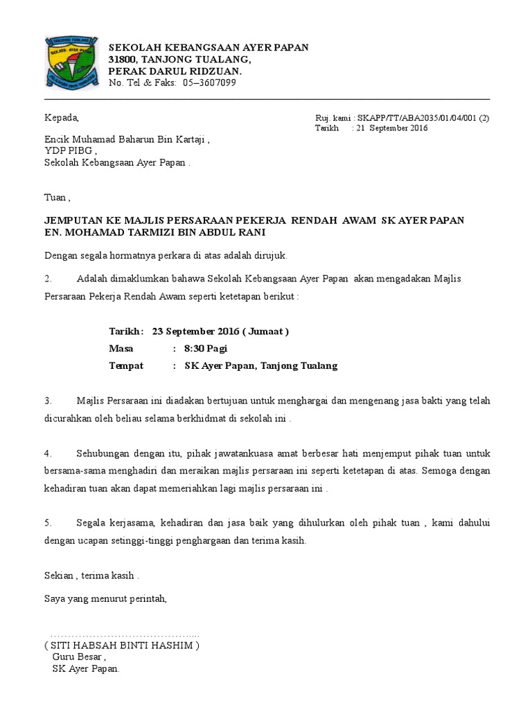 Contoh Surat Jemputan Ibu Bapa Ke Program Sekolah Pdf